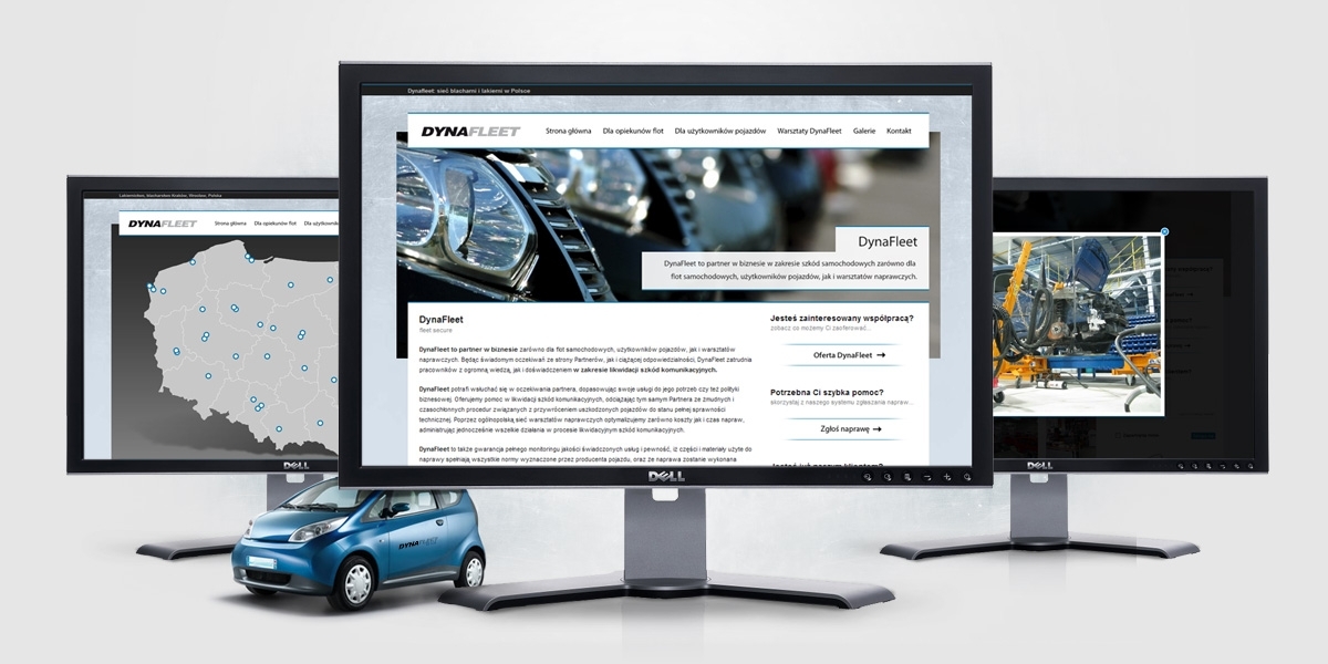 Naszym zadaniem było stworzenie identyfikazji wizualnej, na którą składały się m.in. logotyp, teczki i wizytówki. Obszerna i nowoczesna strona internetowa z możliwością telefonowania na infolinię oraz szeregu formularzów dla ułatwienia informacji i kontaktu z Klientami. Dla sieci DynaFllet stworzyliśmy również specjalistyczny system w zakresie szkód samochodowych zarówno dla flot samochodowych, użytkowników pojazdów, jak i warsztatów naprawczych.